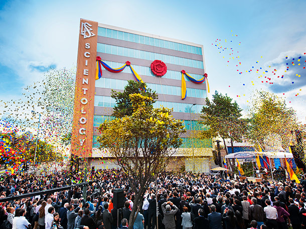 5. juli: Innvielsen av den storslåtte Ideelle Scientology Kirken i Bogotá i Colombia.