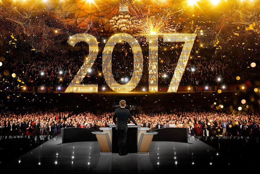 Og med det begynte David Miscavige årets nyttårsfeiring – et fascinerende overblikk over 2016, fortalt med illustrerende historier som strakk seg over 38 000 kilometer av Scientologis verden.