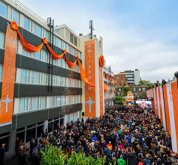 - Og neste helg, den 28. oktober, innvielsen av den prominente nye Scientology Kirken på Amsterdams «Kunnskaps-aveny».