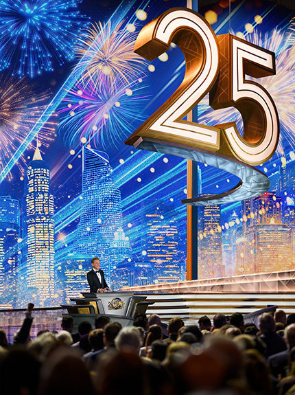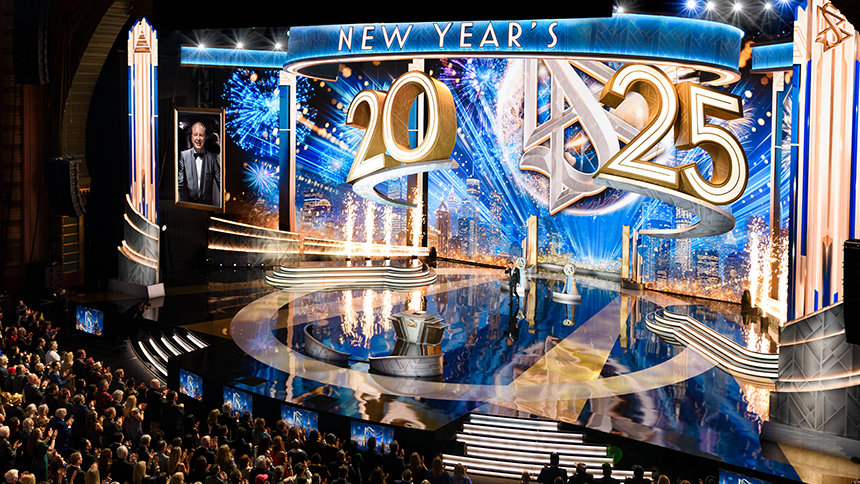 Som kronen på en praktfullt Nyttårsfeiring bryter Shrine Auditorium ut i strålende glans – lys, konfetti og sang – og varsler om et triumferende 2025!
