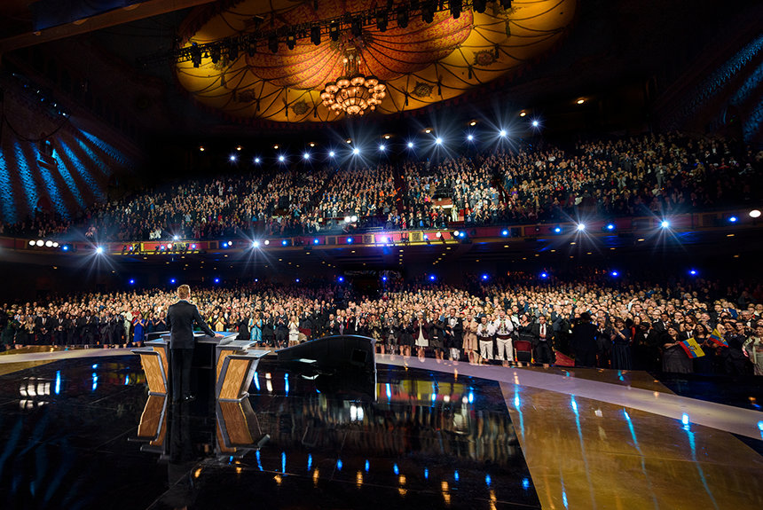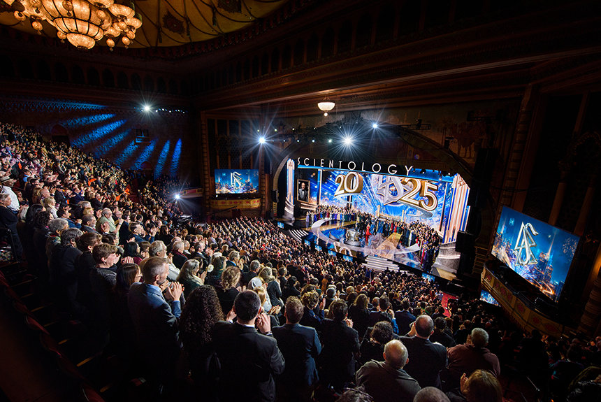 Storslåttheten til Los Angeles’ Shrine Auditorium gir det perfekte bakteppet mens over 6500 samles for å ringe inn Nyttåret i Scientology-stil.