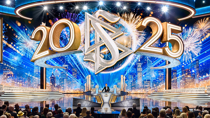 Tilstelningen åpnet med en stjernespekket konsert som brakte publikum på beina. Forventningen vellet opp da skyer av glitrende lys rammet inn scenen, og en gigantisk 2025 ble senket ned fra takbjelkene.