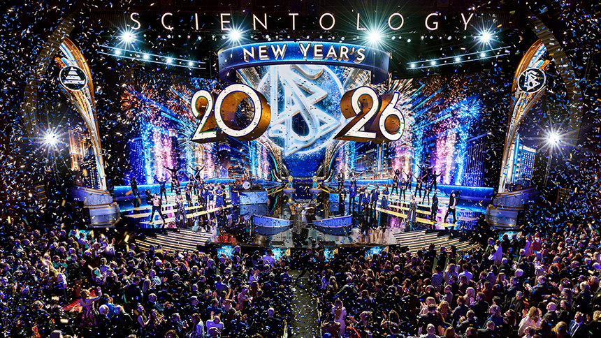 Kvelden tar en vending til full intensitet når Mr. David Miscavige, religionen Scientologys kirkelige leder, trer inn i rampelyset og nyttårsfeiringen 2026 kommer til live med et brak.