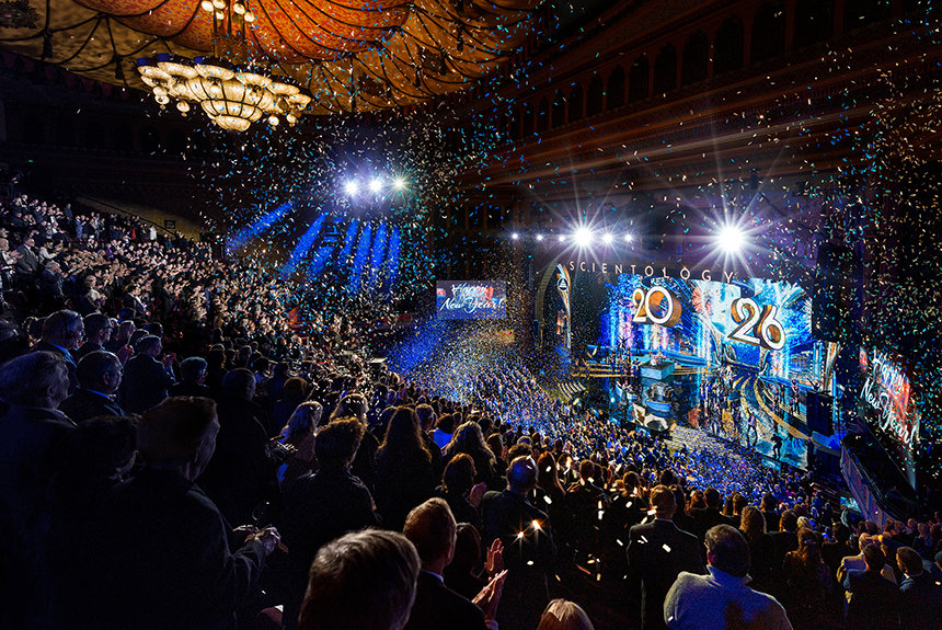 Mer enn 6500 deltakere forvandler salen til en episk feiring idet nyttårsfeiringen starter med umiskjennelig Scientology momentum.