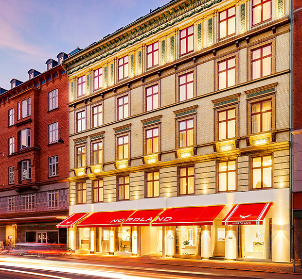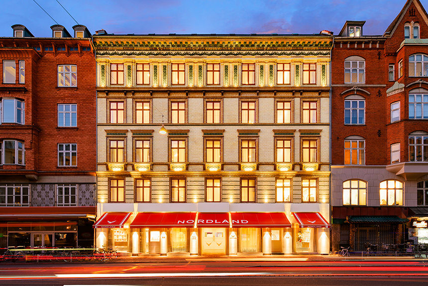 Nordland befinner seg i en historisk nyklassisistisk bygning bare noen minutter fra Københavns ikoniske Tivoli, verdens nest eldste fornøyelsespark. Bygningen, som opprinnelig ble bygd i 1889, har blitt fullstendig bevart av Kirken, inklusive dens skifertak og murstein- og terrakotta-fasade. Bygningens gårdsplass i teglstein som er typisk for København, ble også restaurert til perfekt tilstand.