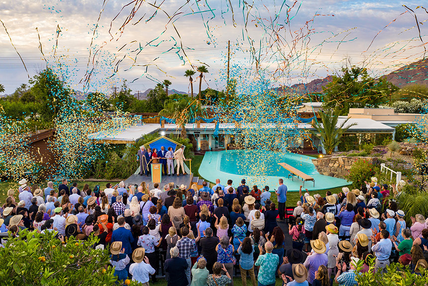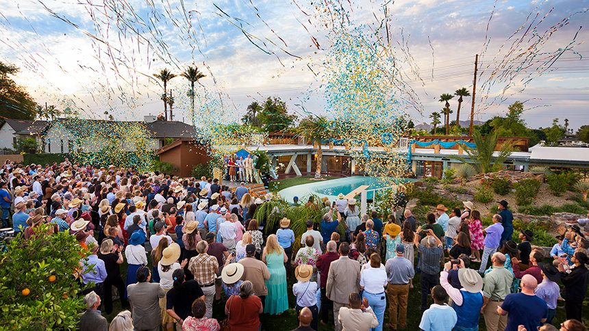 På en ørkenvarm lørdagskveld ble den historiske bygningen åpnet igjen, gjenfødt som et L. Ron Hubbards Landemerke. Som et sted av internasjonal betydning er dette «der framtiden for alltid ble forandret», sa Scientology Kirkens kulturarvsbevarer, som ledet tilstelningen og overvåket stedets historiske restaurering.