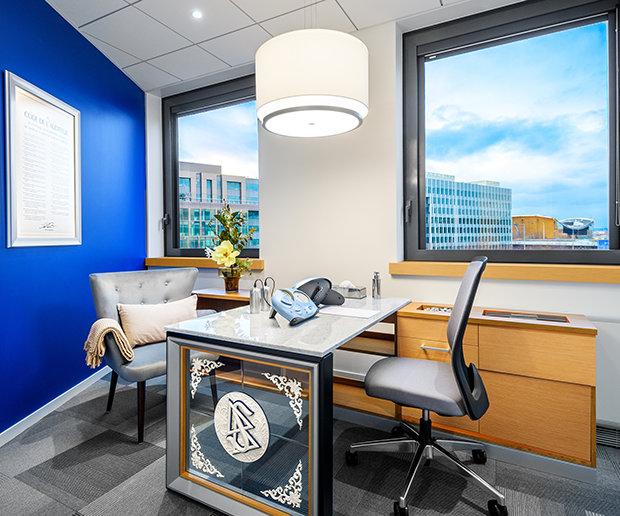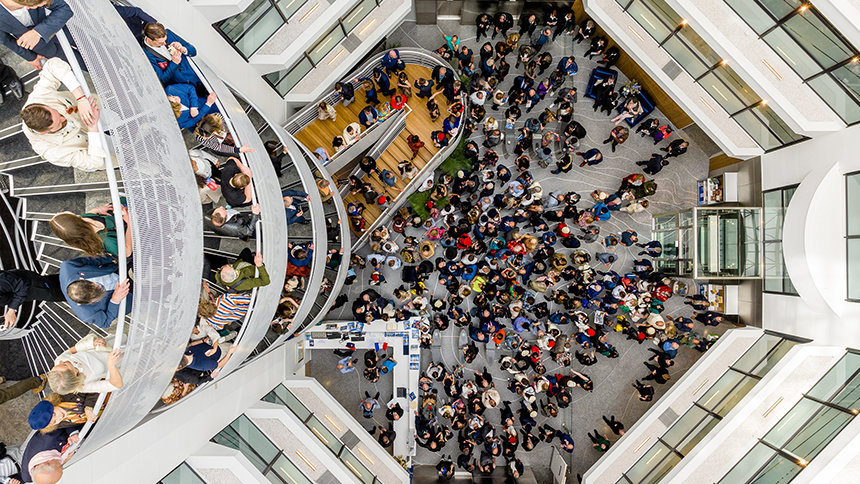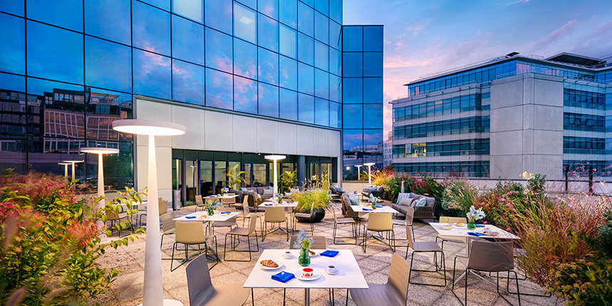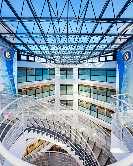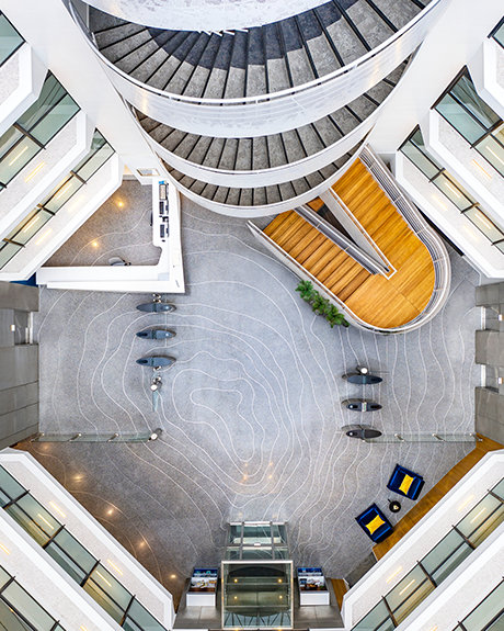 Utover dens skinnende ytre og den moderne geometriske treportalen, avspeiler bygningens tårnende atrium tilstedeværelsen av et fortryllende sequoiatre. «Årringer» individuelt innlagt på terrazzogulvet og en sirkulær balustrade pyntet med et bladmønster uttrykker sequoia-motivet mens gjester går opp gjennom det 15 meter høye rommet badet i naturlig lys fra det enorme takvinduet over.