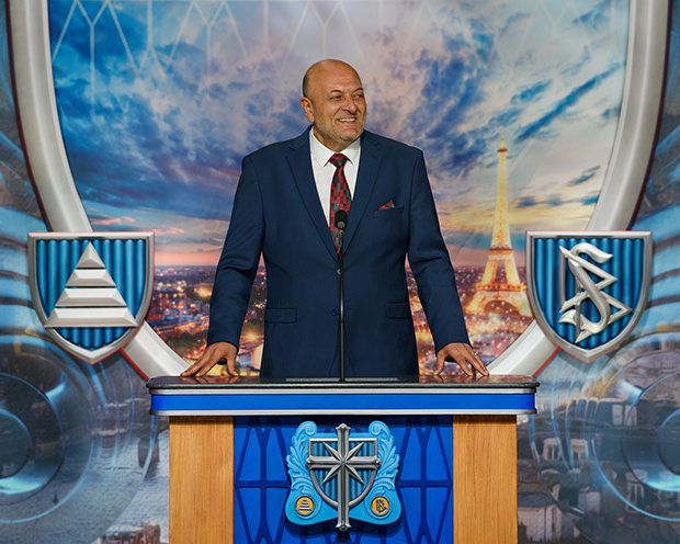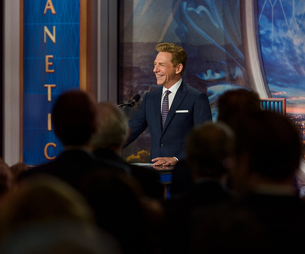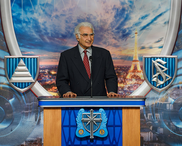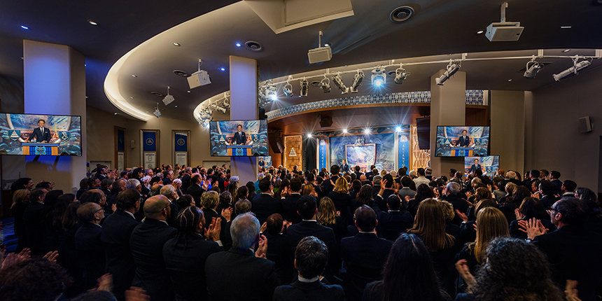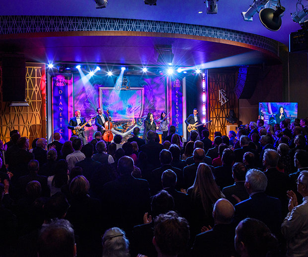 Men de mest høylytte ovasjonene, både innendørs og over hele utendørsområdet – der tusener flere overvar eventet på gigantiske skjermer i enorme teltpaviljonger utenfor den overfylte salen, var for mr. David Miscavige, Styreformannen i Religious Technology Center, da han innviet dette spektakulære nye senteret.